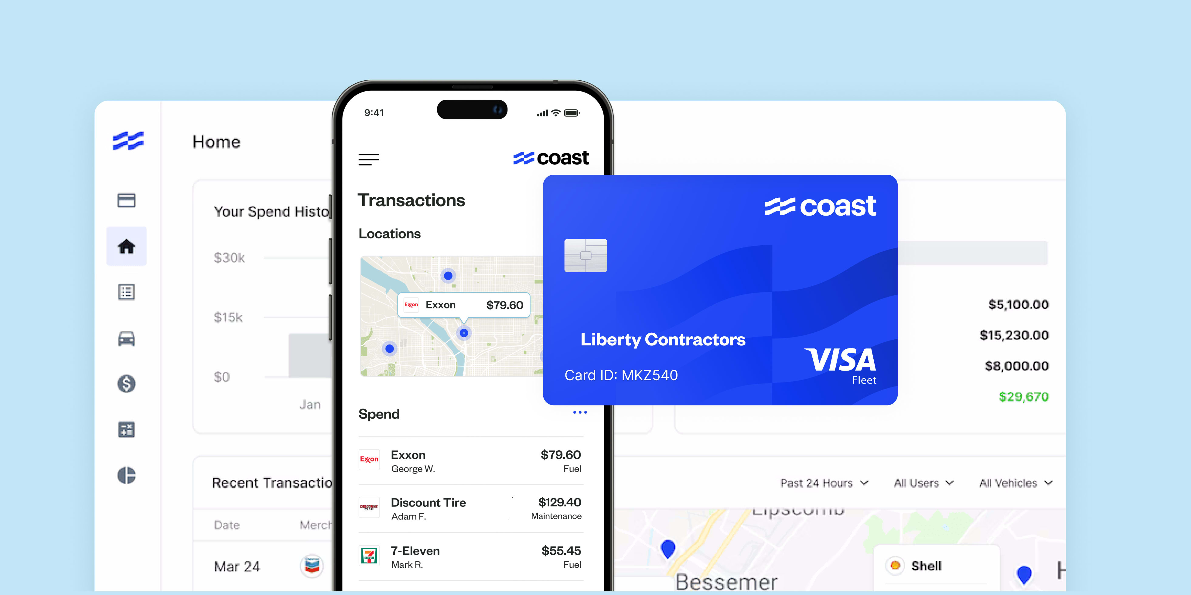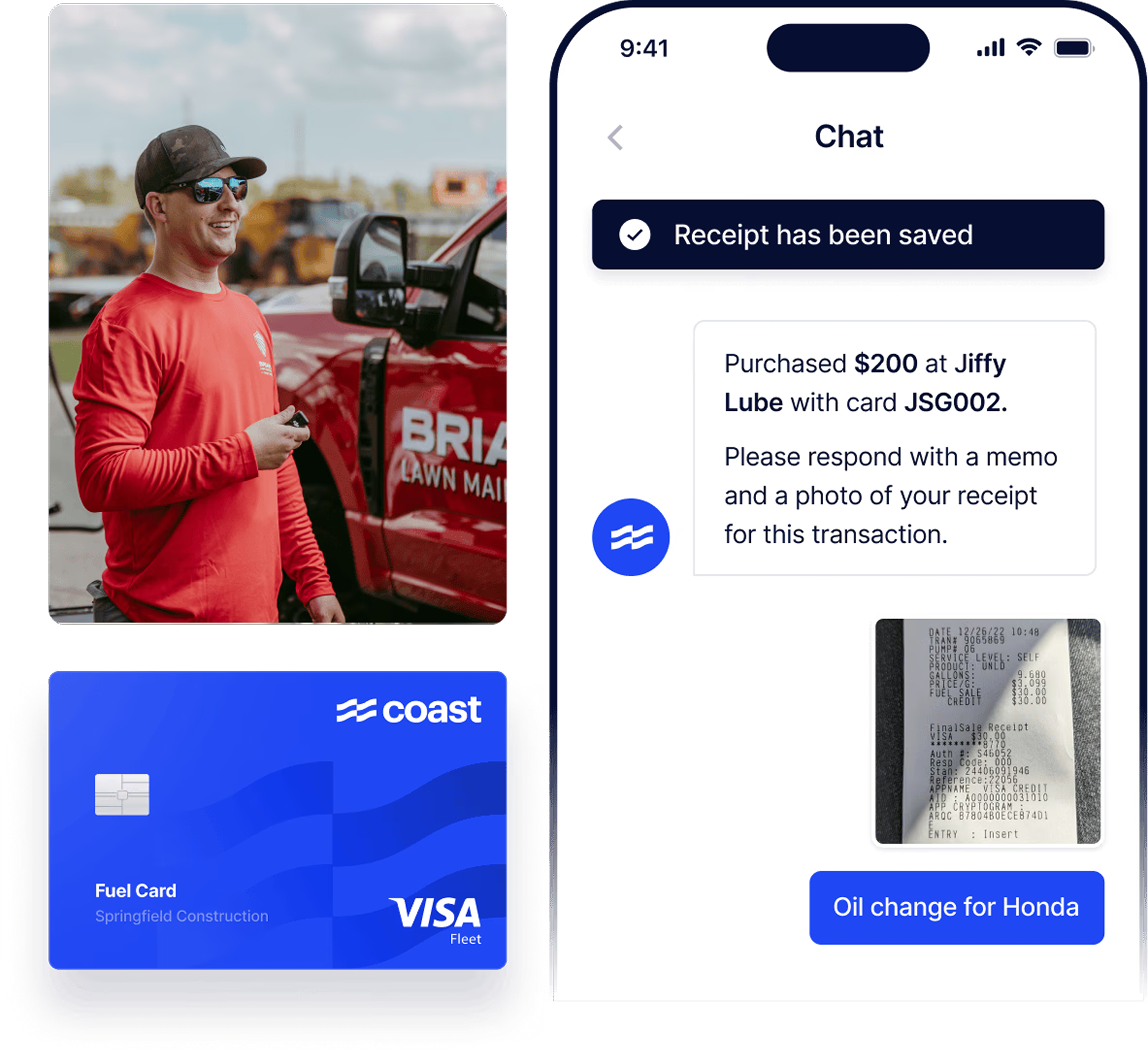 With universal Visa acceptance and seamless integrations with your telematics and accounting tools, Coast helps trades and transportation businesses save an average of $30,000 a year while cutting month-end close by 1.5 days.